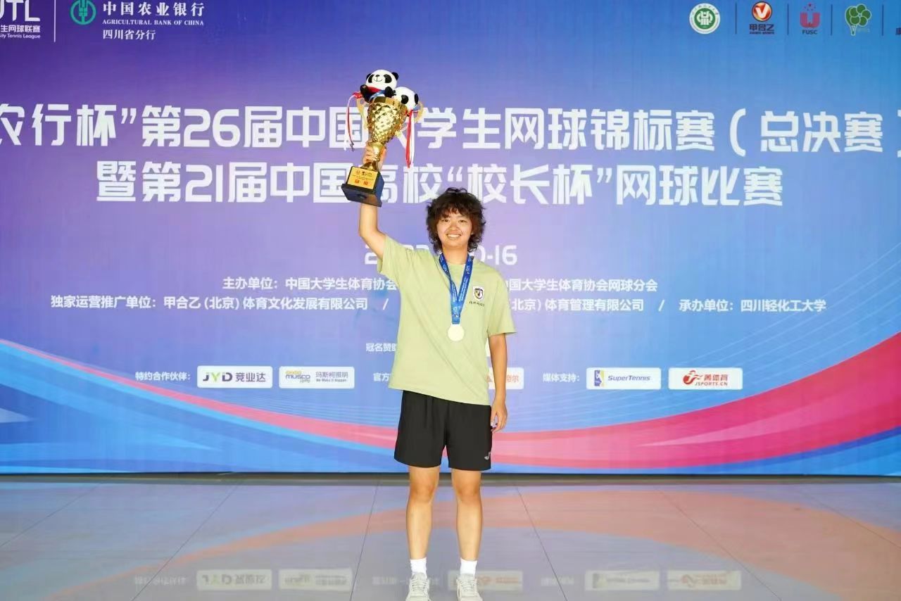 这是继吴玥瑶同学在获得2023年第26届中国老员工网球锦标赛(总决赛)女子甲组团体冠军、女子甲组单打冠军后,再次获得该项比赛团体和个人的好成绩,为北外和yl23455永利集团争得了荣誉。