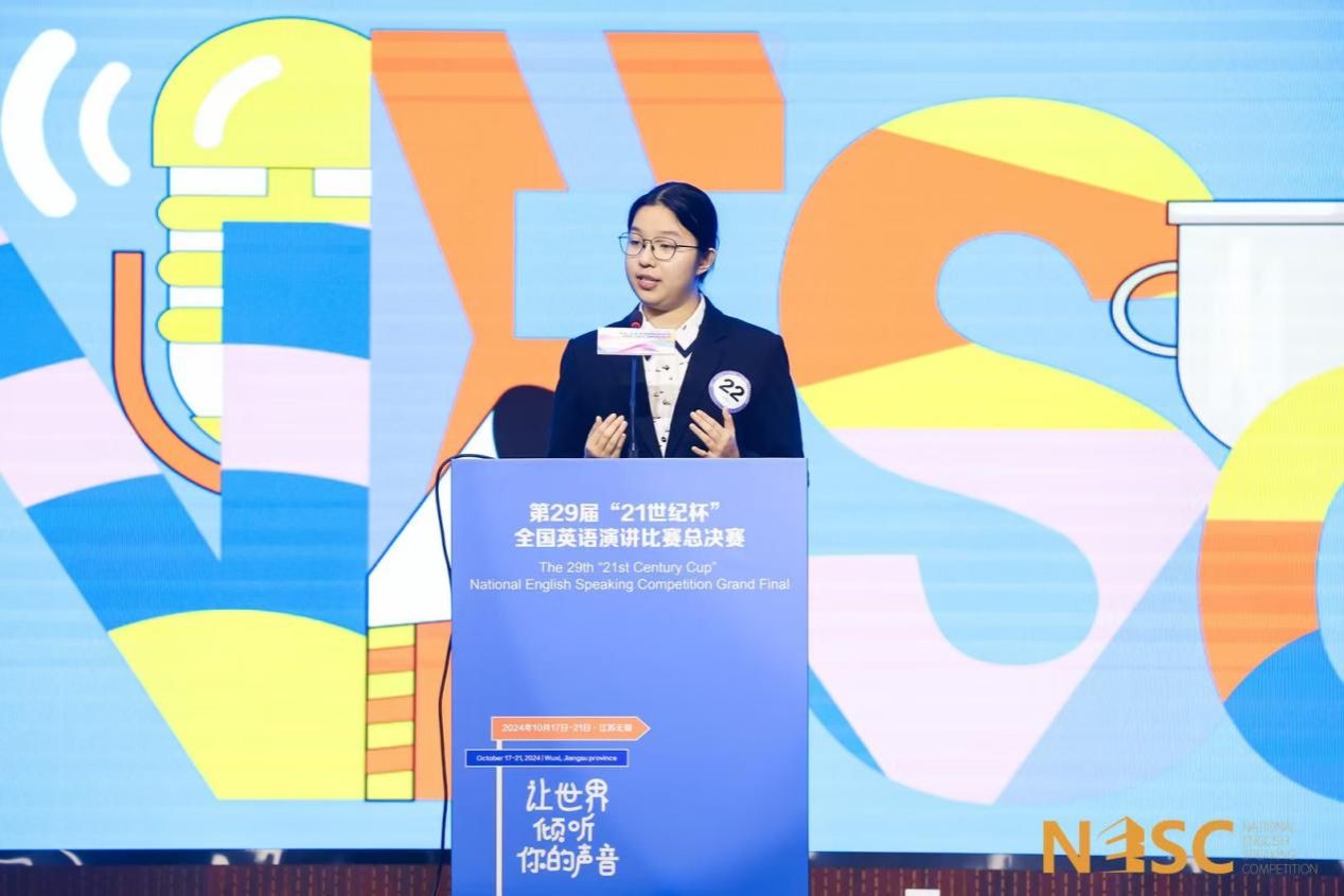 2024年10月17日-21日,yl23455永利集团本科生陈惜缘参加了在江苏无锡举办的第29届“21世纪杯”全国英语演讲比赛。她通过在两轮半决赛和决赛中的优异表现,最终斩获了全国一等奖(列第四名)的好成绩。