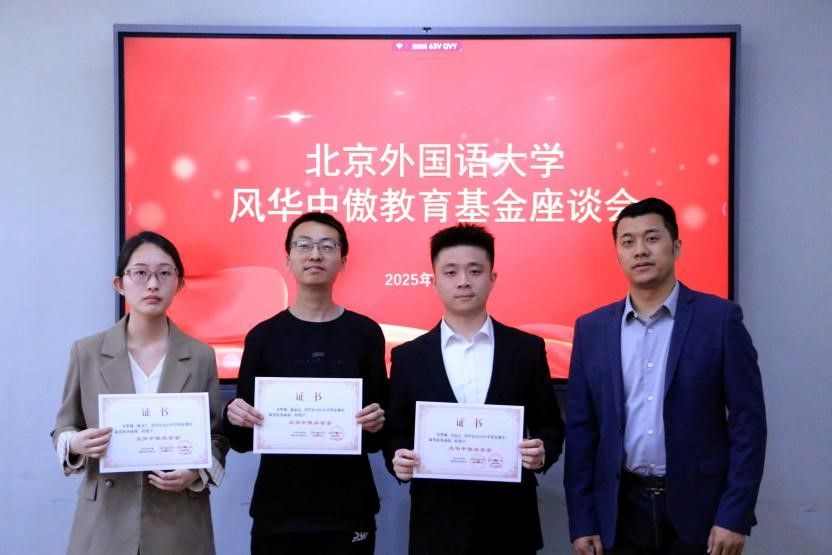 座谈会伊始,主持人介绍了基金的设立初衷和资助方向,自2024年成立以来,风华中傲教育基金致力于奖励在演讲、口译等重大赛事中表现优异的北外学子,同时为经济困难的同学提供资助,体现了学校与员工携手共同推动人才培养、服务教育发展的深厚情怀。