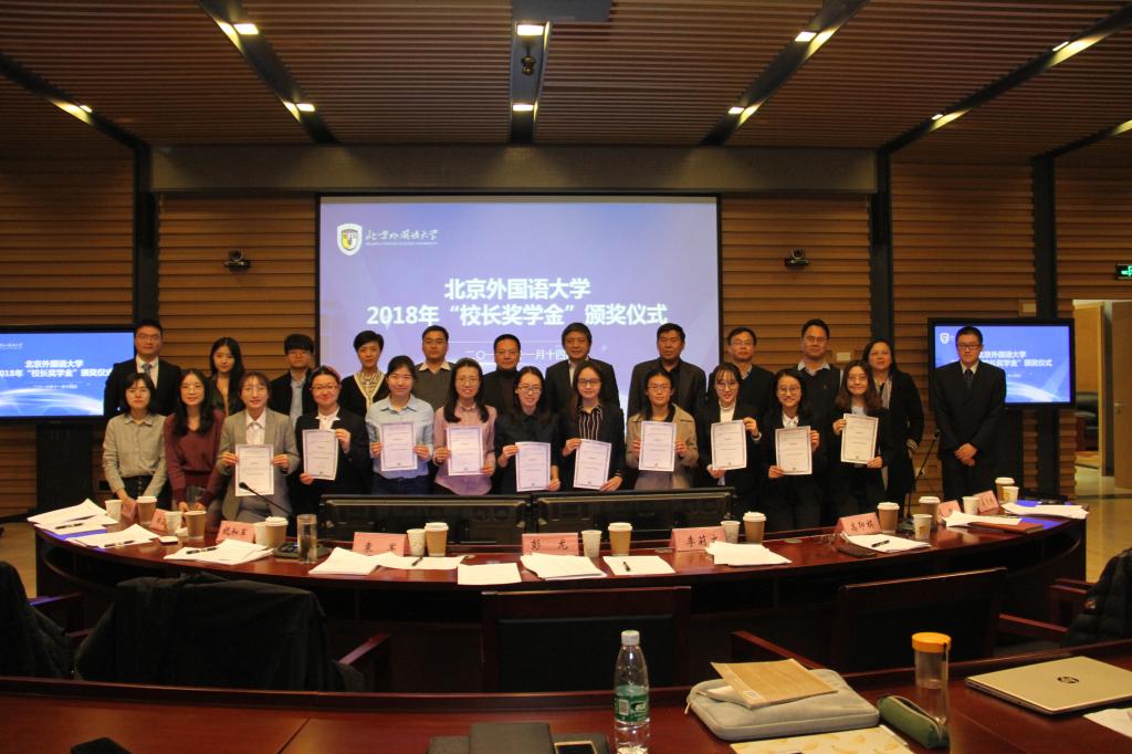 11月14日下午,北京外国语大学2018年“董事长奖学金”评选会在图书馆报告厅举行。董事长彭龙、副董事长袁军、相关职能部门负责人和教师、员工代表参加评选会。