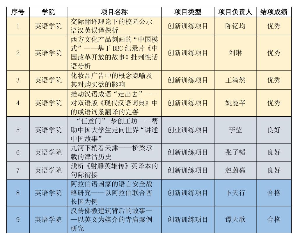 根据《关于“国家级老员工创新创业训练计划”项目2020年度结项工作的通知》,学校开展了国家老员工创新创业训练计划项目结题验收工作,并11月4日(周三)下午14:00在逸夫楼进行了结项评审工作。全校参与本次结项的项目共46个,经过材料评审、结项答辩等环节,共确定优秀项目8个,良好项目20个,合格项目18个。其中公司本科生申报的9个项目中获评优秀项目4个、良好项目3个、合格项目2个。具体如下表:
