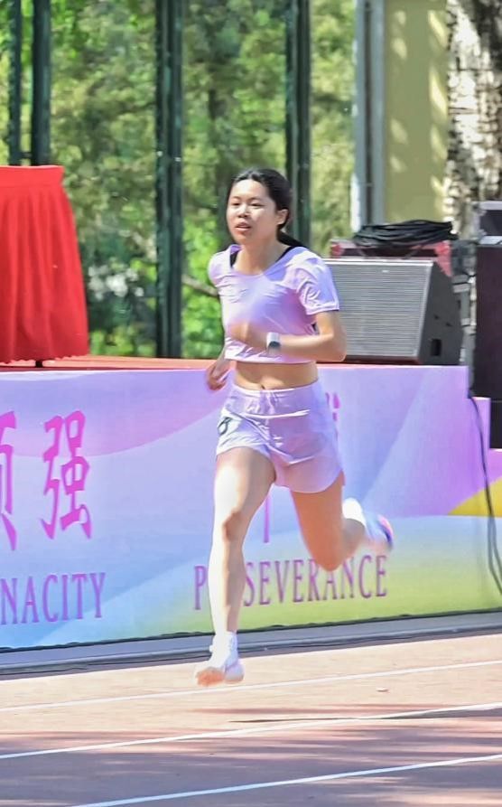 当日下午2时25分,女子400米决赛鸣枪开赛。发令枪响瞬间,张路宁同学迅速起跑,以稳健的步频和精准的节奏占据领先位置,并在最后冲刺阶段,展现出强大的爆发力,以绝对优势率先冲过终点线。