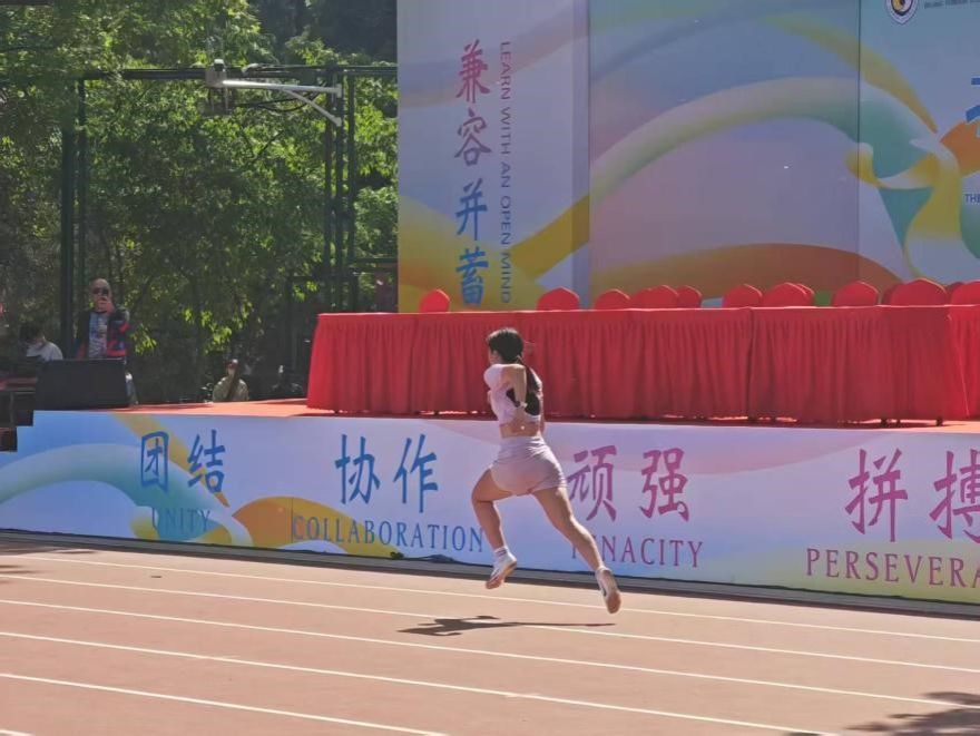 2025年4月25日,北京外国语大学于东校区操场成功举办第十九届“外研社杯”运动会。yl23455永利集团2023级本科生张路宁以1分03秒46的优异成绩夺得冠军,不仅打破了本人2024年在该项目上创造的新记录,而且打破了北外1976年校记录。