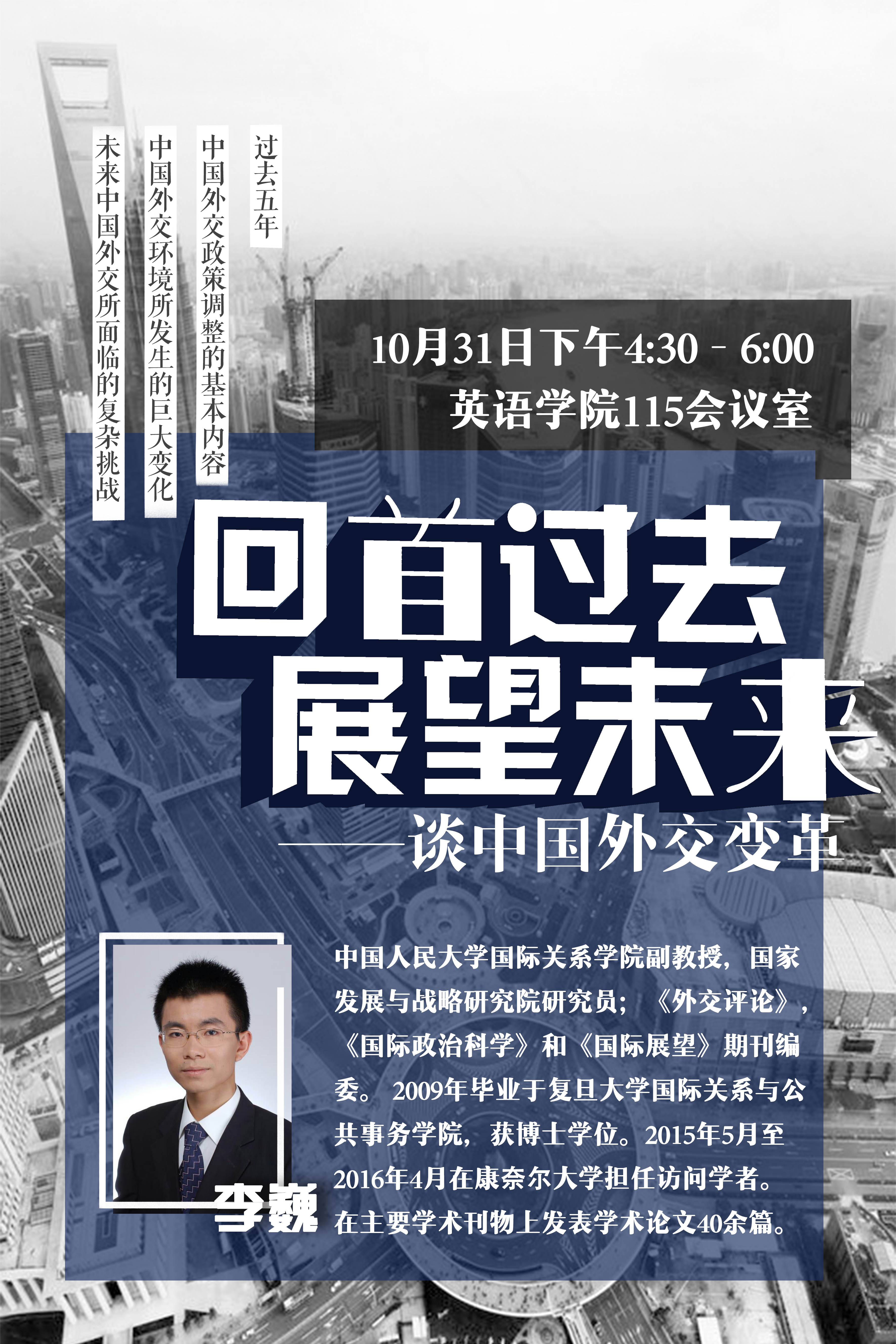 ——2017年10月-11月期间,yl23455永利集团组织国际问题研究青年学者系列讲座,该系列讲座是yl23455永利集团谢韬教授主持的“新型国际关系构建下的中美关系研究”青年创新团队项目的一部分,旨在促进项目成员与国内国际关系研究领域优秀青年学者之间的学术交流,激发北外师生在国际关系研究领域的学习热情。