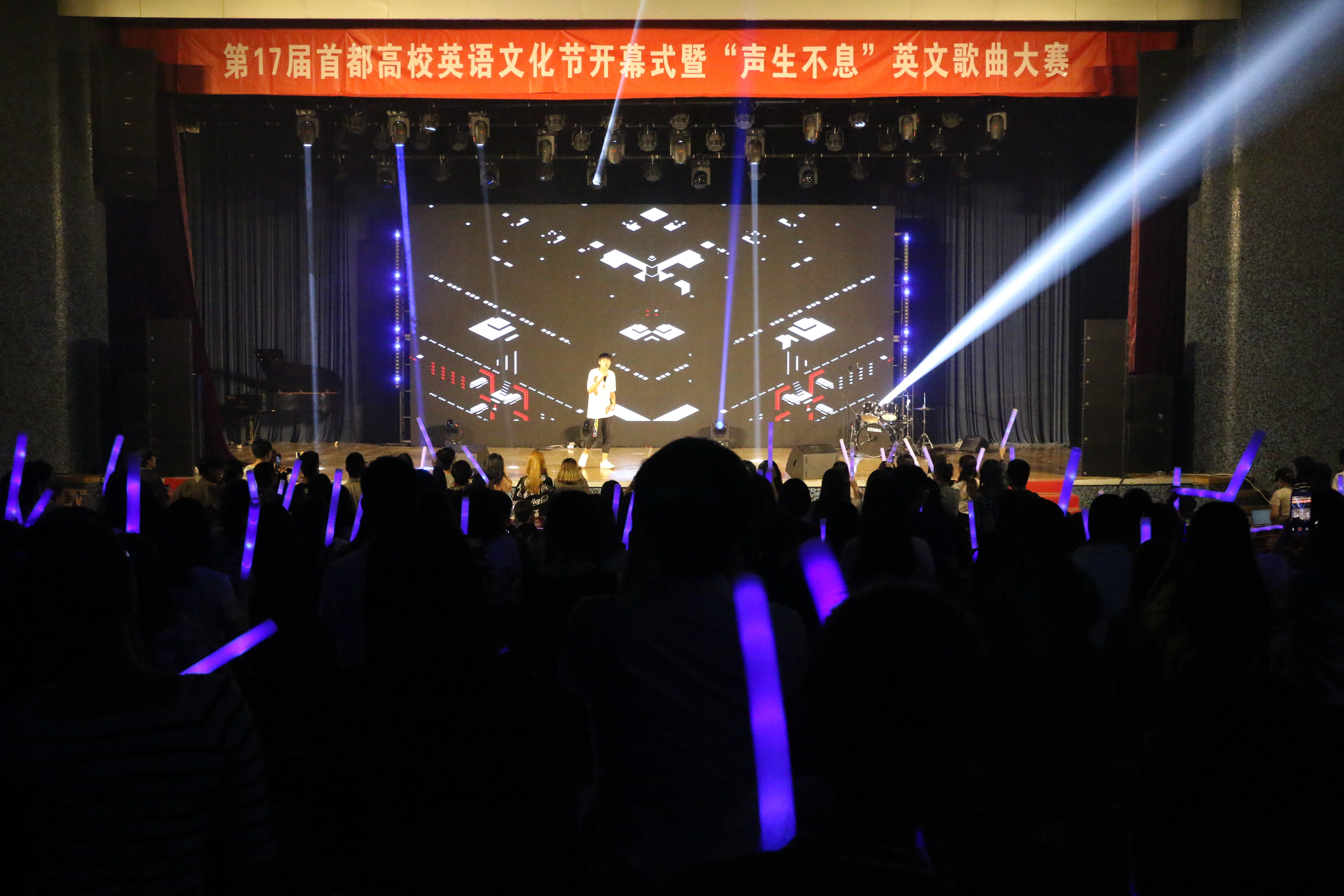 ——张剑经理致开幕词,强调了在当今时代背景下,对各国文化的独立思考能力和批判性学习的重要性,也表达了对在学习道路上不断进取精神的鼓励与赞赏,并寄予新一代英院学子以厚望。本届英歌赛也充分体现了兼容并蓄,开放多元的北外精神,参赛选手身份丰富,表演形式精彩多样。来自不同国家不同民族的选手同台竞技,精彩动感的说唱与款款抒情的歌曲在英歌赛的舞台上共同呈现。这场震撼人心的视听与文化盛宴,感染了在场的每一个人,博得了评委和同学们的阵阵喝彩。最终来自北京外国语大学的陈丽妃以直击心灵的动听嗓音拿到冠军,北京语言大学的安妮、北京外国语大学的彭睿博分列亚军、季军。