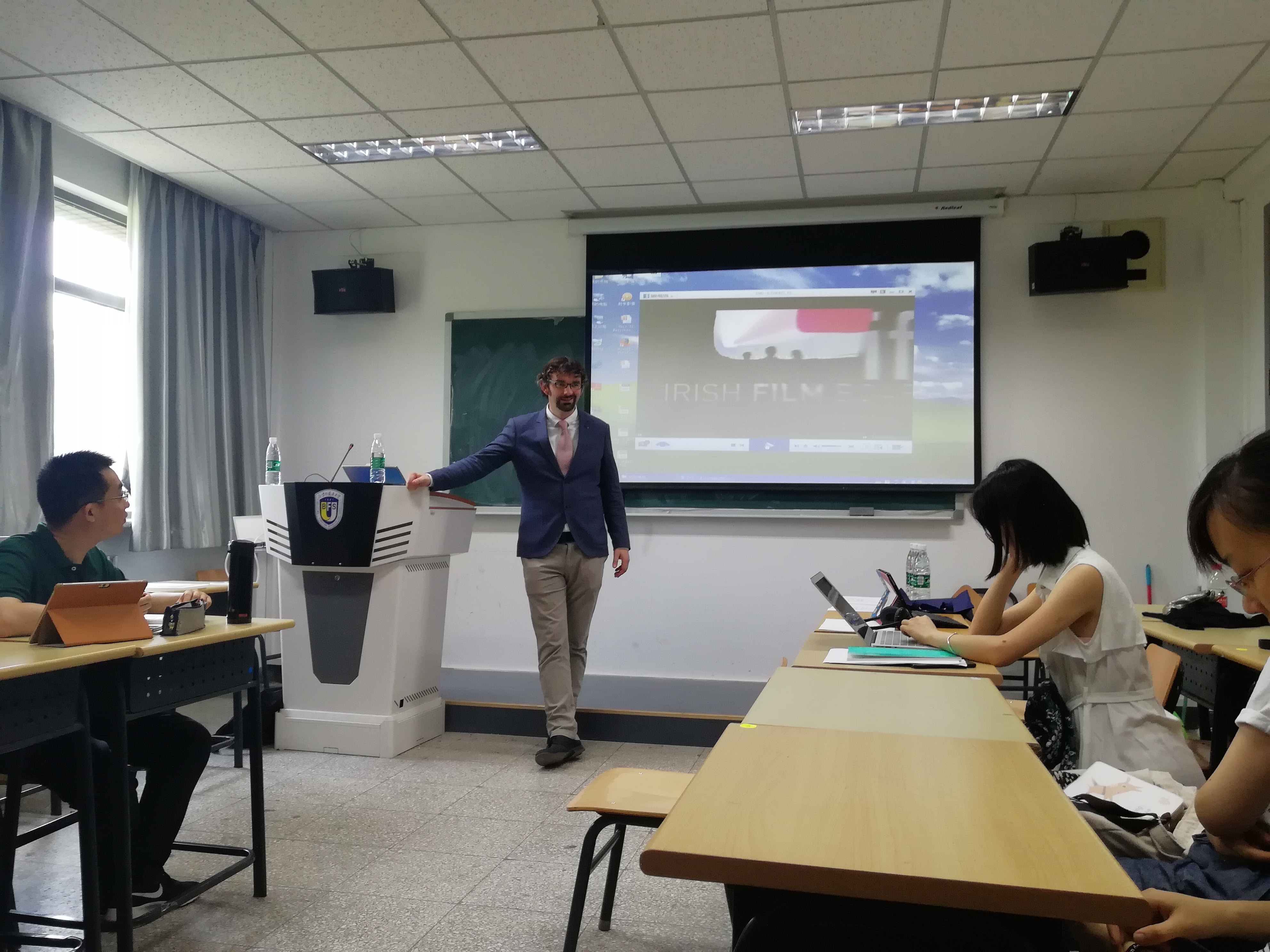 ——当晚,英研及爱研师生前往798尤伦斯当代艺术中心参加爱尔兰驻华使馆举办的《以和平之名:约翰•休谟在美国》放映及研讨活动。爱尔兰驻华大使、英国驻华使馆公使以及北爱尔兰驻华代表处主任等共同出席了本次活动,并围绕影片内容及北爱尔兰现状等展开对话。嘉宾们指出,北爱和平来之不易,英国、爱尔兰共和国及北爱政府都应努力维护和平局面,在挑战面前谋求更好的发展。