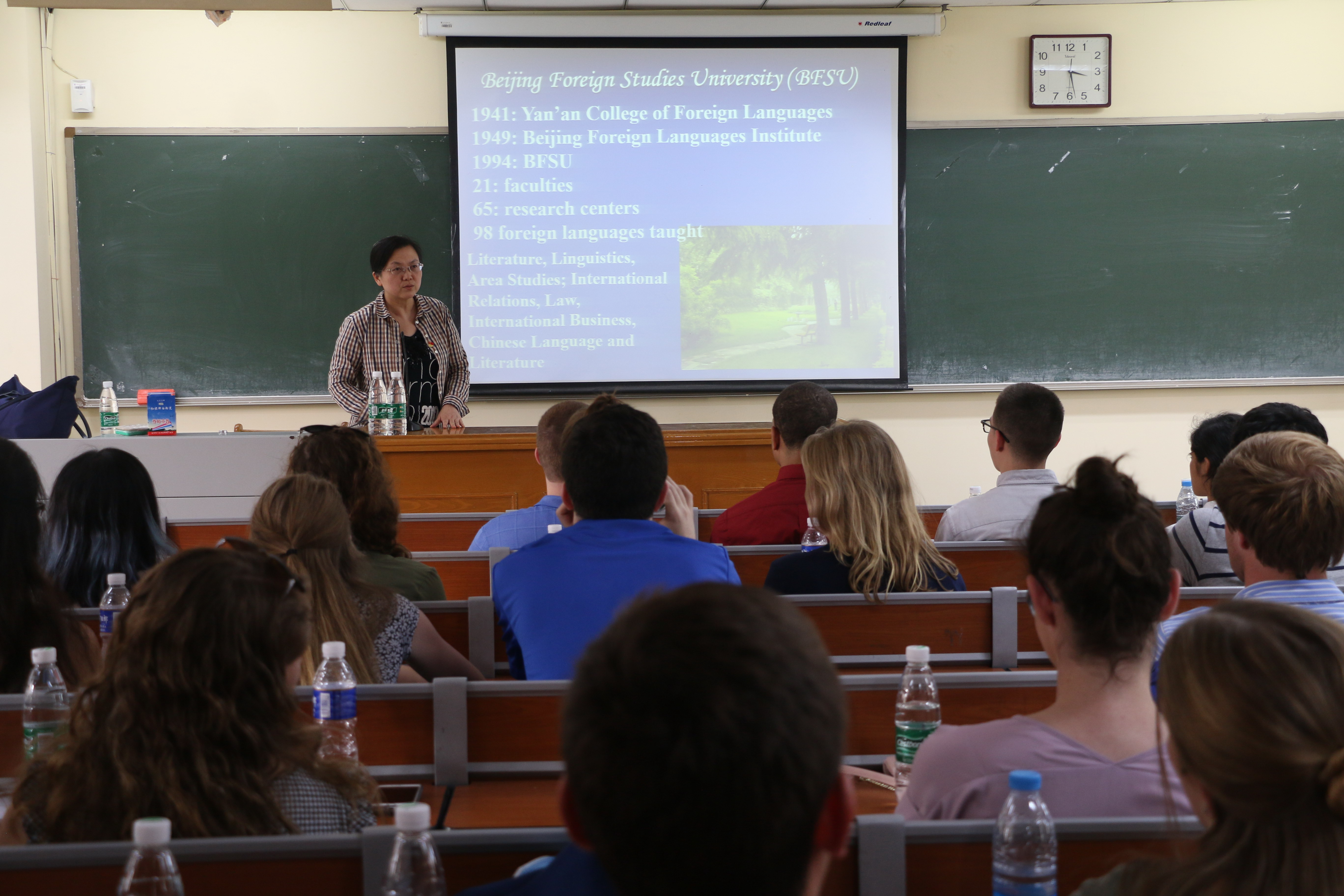 ——讲座结束后,员工志愿者与来访师生自由交流,带他们游览校园,进一步体会北外校园文化。此活动已举办11届,每年举办1-2场,深受员工欢迎。