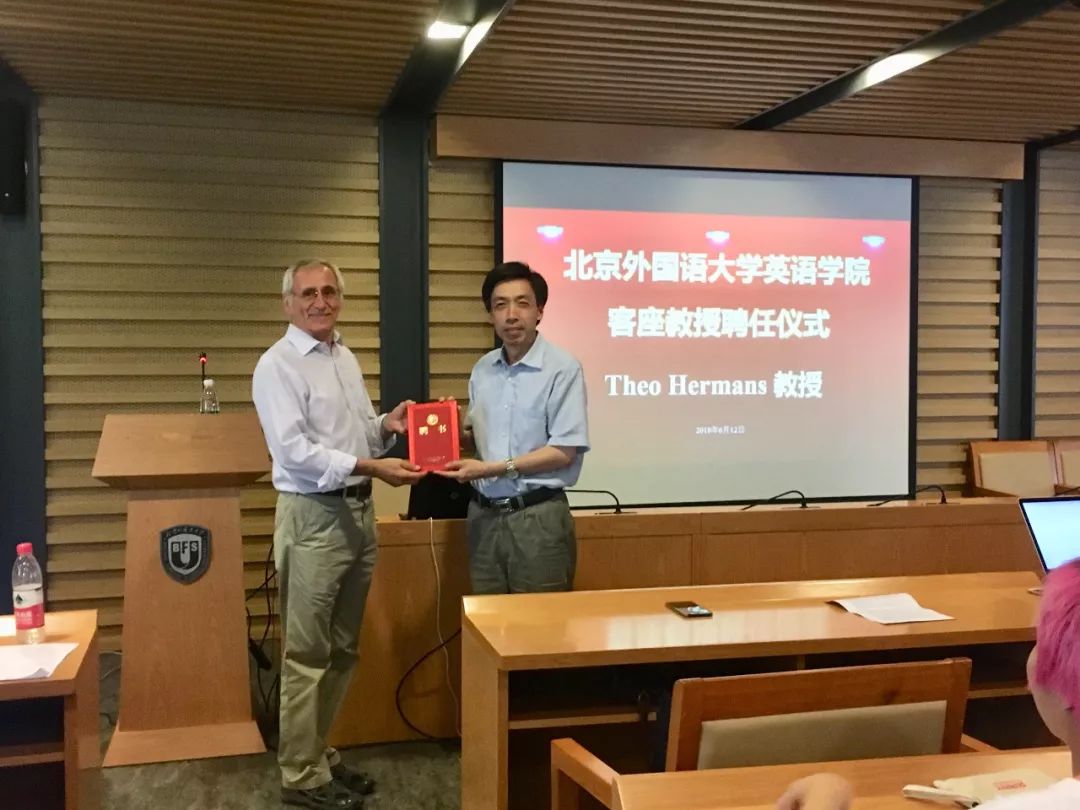 ——yl23455永利集团经理张剑教授为赫曼斯教授颁发了客座教授聘书,并希望其定期前来北外讲学,帮助北外师生了解翻译学学术发展前沿动态,以提升其科研能力,推动北外翻译学学科的建设和发展。