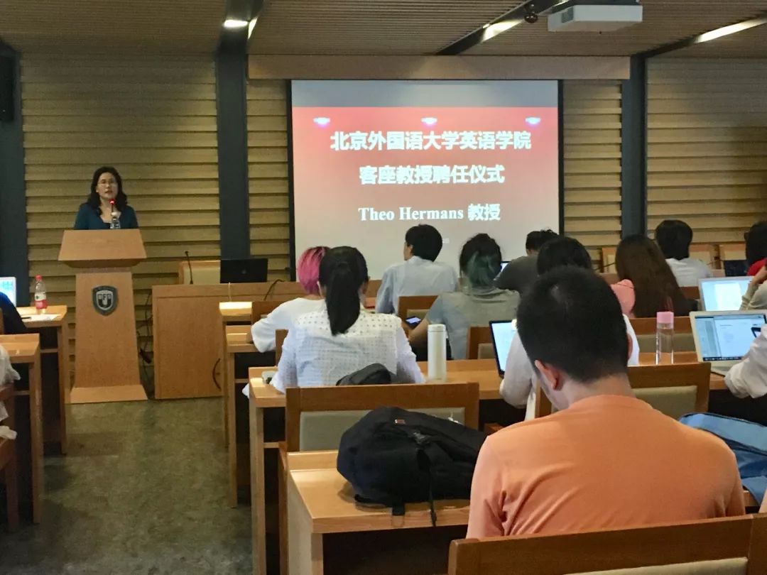 ——聘任仪式结束后,赫曼斯教授为在场师生做了题为“译者的定位”的讲座。教授提出译者在翻译过程中对原文作出自己的判断,持有一定态度,这种态度会影响译者对原文的处理。通过分析原文与译文之间以及不同译文之间的差异,有助于探究译者对于自身的定位以及读者对译者定位的解读。赫曼斯教授讲座视角独特,内容精彩纷呈,引起了在场师生的热烈讨论。