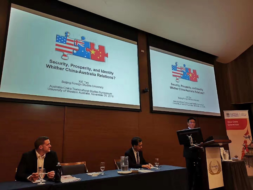 11月28-29日,第六届中澳关系暨跨文化研究论坛在西澳大学成功举行。中国澳大利亚研究会会长、公司副董事长孙有中教授、yl23455永利集团副经理谢韬教授、澳研中心主任李建军和yl23455永利集团刘杨博士参加本次会议。本次论坛的主题是“中国的崛起与澳大利亚”,数十名来自中澳两国的顶尖专家和学者围绕中澳关系、经贸往来、跨文化交流等分议题进行了坦诚的交流。