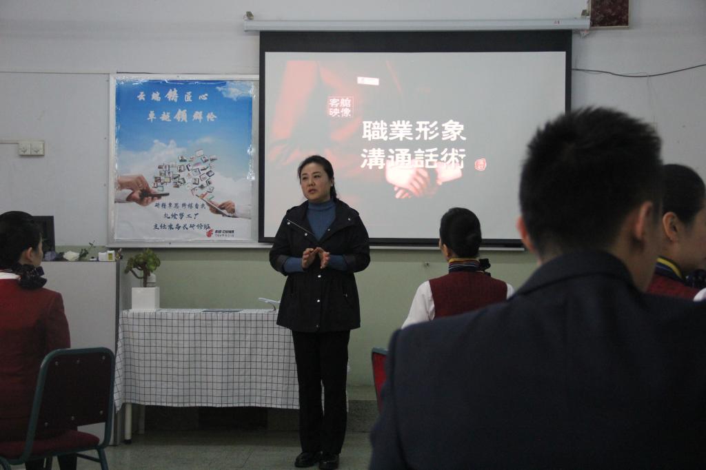 本期礼飨梦工厂主任研修班的主题是“如何打造职业形象”。支部党员一进教室,近二十位国航机组人员已然就位。虽然不在工作时间,但他们仍然身着制服,妆容精致,坐姿挺拔,从中不仅能够看出国航方面对此次活动的重视,更能看出“真诚、睿智、优雅”的职业形象已经和他们本人融为一体。