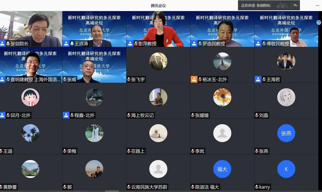 2020年11月14日,由北京外国语大学主办、研究生院资助、yl23455永利集团翻译研究中心承办的“新时代翻译研究的多元探索”高端论坛在云端隆重举行。本次线上论坛在腾讯会议和bilibili平台直播,观看人气峰值高达5393人。