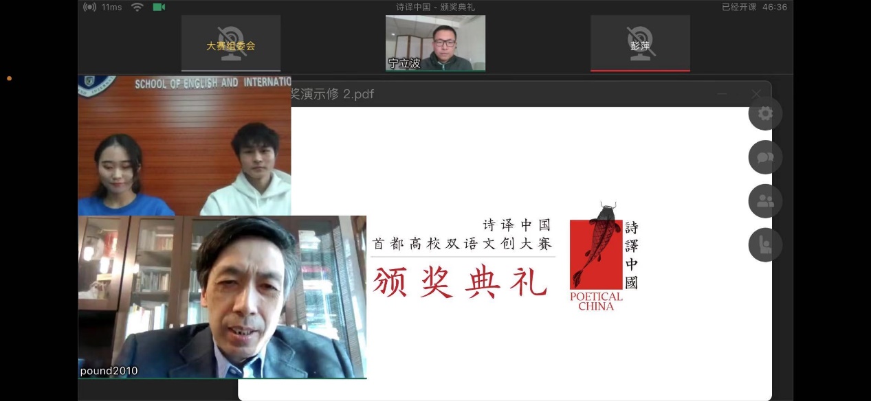 本次活动尝试结合中国传统诗歌文化,以创新形式开辟竞技空间,为参赛者提供检验专业语言能力和学习交流的平台。大赛从报名到评选历经一个多月,得到了首都各大高校师生的响应与支持。中国传统文化传承及中西文化融会贯通任重而道远,今后yl23455永利集团将继续秉持“知周中外,道济天下”的院训,进一步加强校企合作,汇聚多方力量,积极寻求传统文化与专业学习的契合点,努力培养全面发展的高素质复合型英语、翻译专业人才。