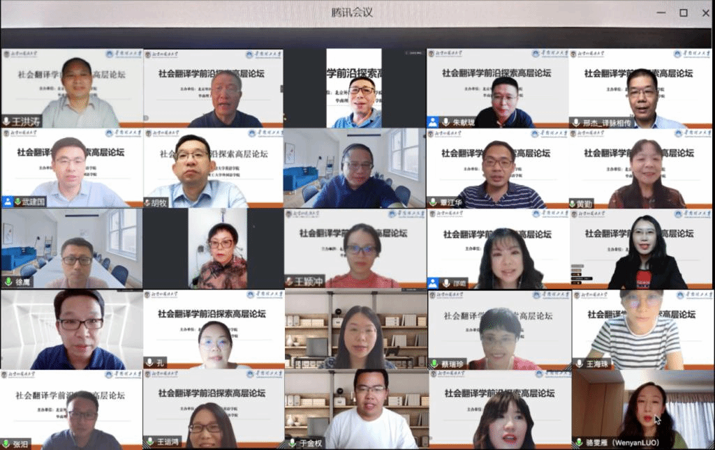 2021年7月18日,北京外国语大学yl23455永利集团和华南理工大学外国语学院联合主办的“社会翻译学前沿探索高层论坛”在线上成功召开。本次论坛邀请到了来自全国30多所高校的社会翻译学领域的专家学者,围绕“社会翻译学的本体论与方法论”“社会翻译学与对外话语体系建构”“社会翻译学与译者行为”等议题展开深入研讨。根据腾讯会议和B站直播的数据统计,本次论坛吸引了参会者2200多人,是国内举办的以社会翻译学为主题的一次高水平学术盛会。