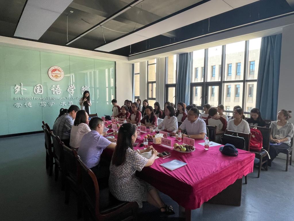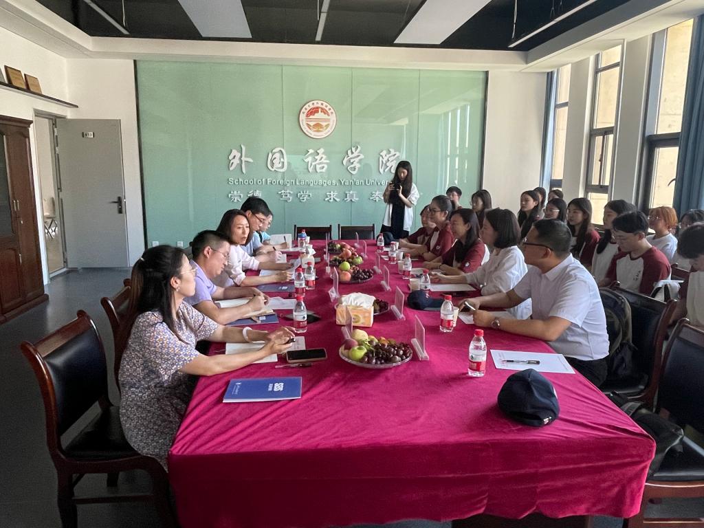 为推动学习贯彻习近平新时代中国特色社会主义思想主题教育走深走实、见行见效。7月6日,英语公司党总支书记王明欣带队赴延安大学外国语学院开展座谈交流,延安大学外国语公司党委书记梁艳,副书记许多文等进行了接待。