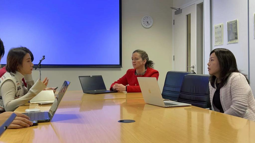 随后实践团一行与科克大学国际处负责人进行座谈,科克大学北京代表处主任张蓓、副主任李鹏出席本次座谈会。科克大学国际处负责人对科克大学优势团队建设、团队力量、就业前景等本硕联合培养项目的相关情况进行了介绍,她表示希望与北京外国语大学在学术交流、联合办学等方面进行更多的合作。科克大学北京代表处的老师也表示,北外拥有丰富的外语资源优势,希望双方以此次座谈为契机,在暑期交流,海外实践等方面进行合作。最后张珺涵老师对yl23455永利集团的办学历史,团队建设,课程设置等进行介绍,就未来双方在留学交换,暑期实践等多方面合作进行商议,为之后双方合作交流打下坚实基础。