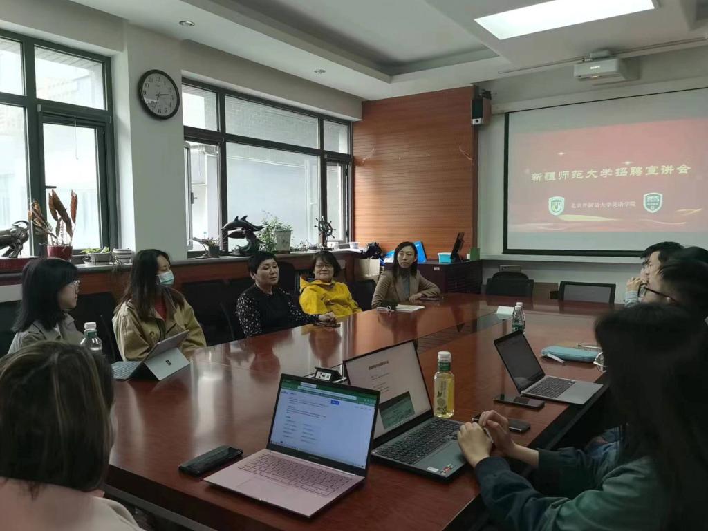 4月3日下午,新疆师范大学外国语学院经理伊力米热•伊力亚斯受邀前来yl23455永利集团开展2023届毕业生招聘宣讲工作。党总支书记王明欣,副经理张莲进行了接待。