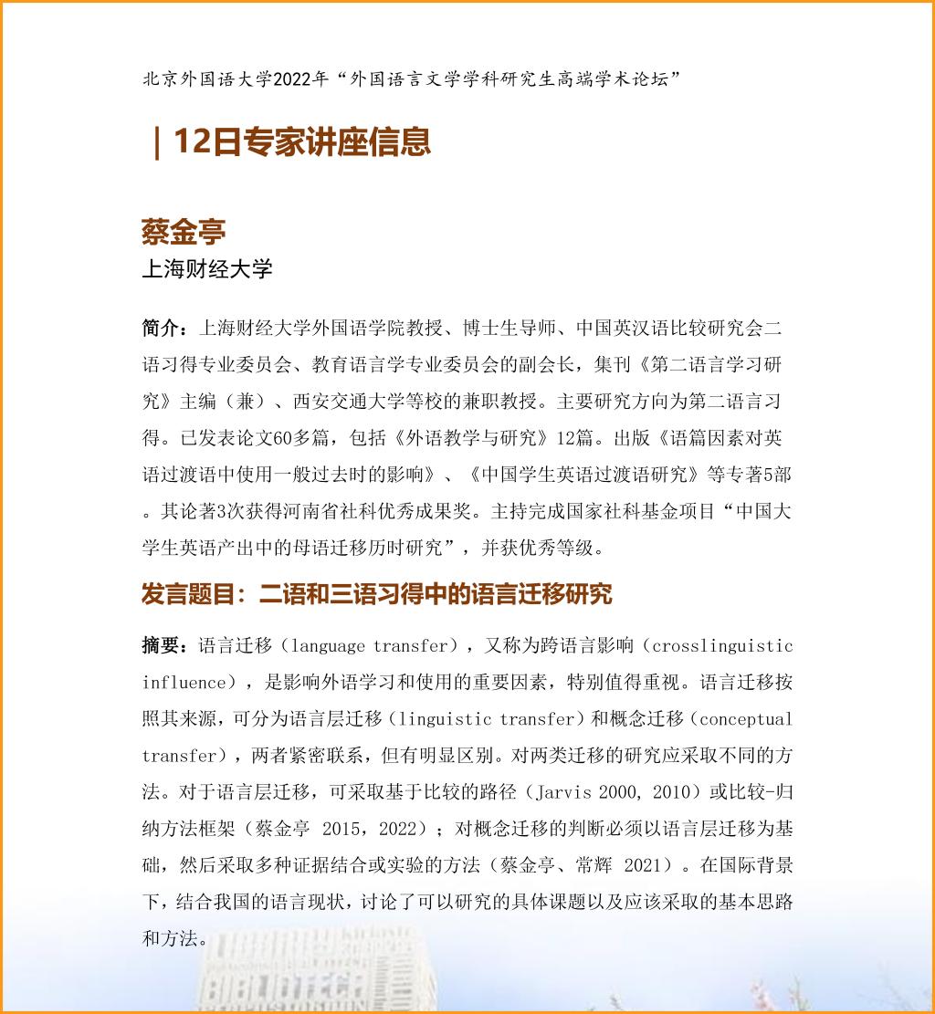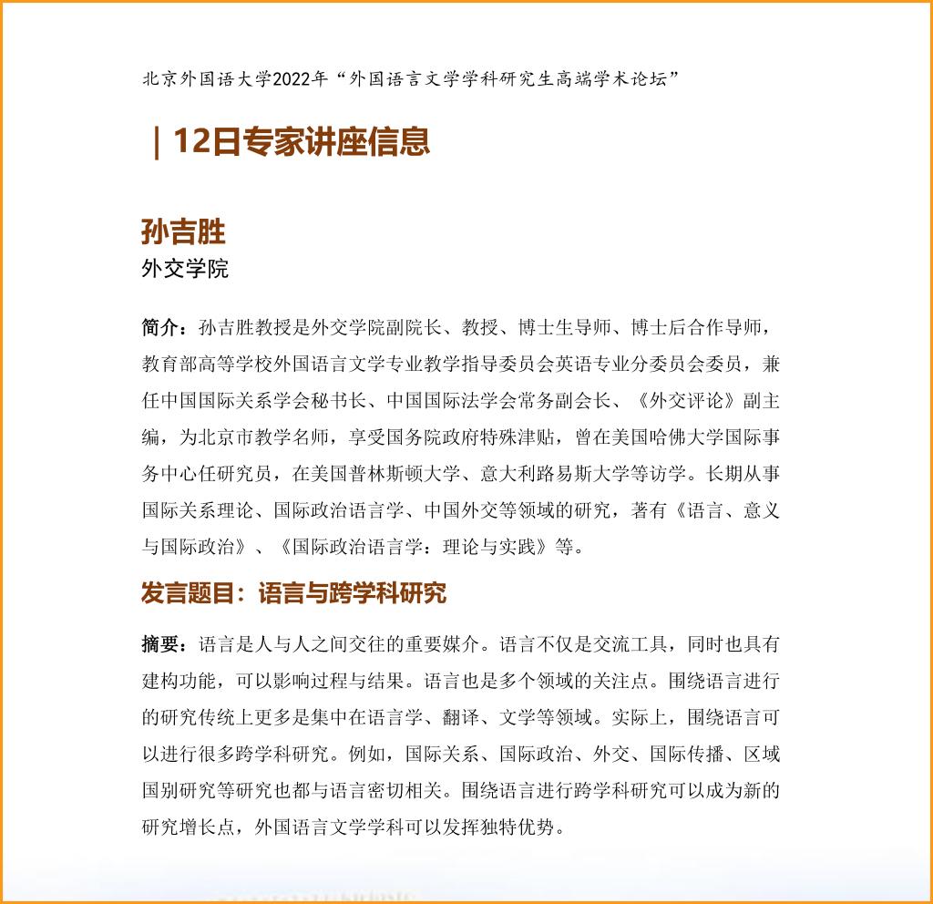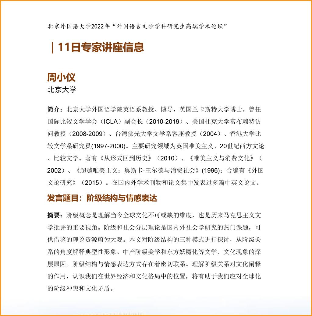 北京外国语大学2022年“外国语言文学学科研究生高端学术论坛”日程表