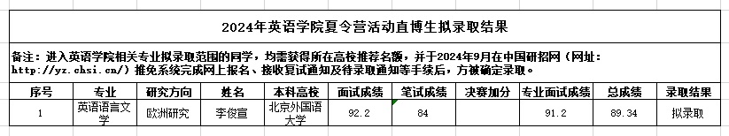 2024年夏令营活动拟录取结果(博士研究生)