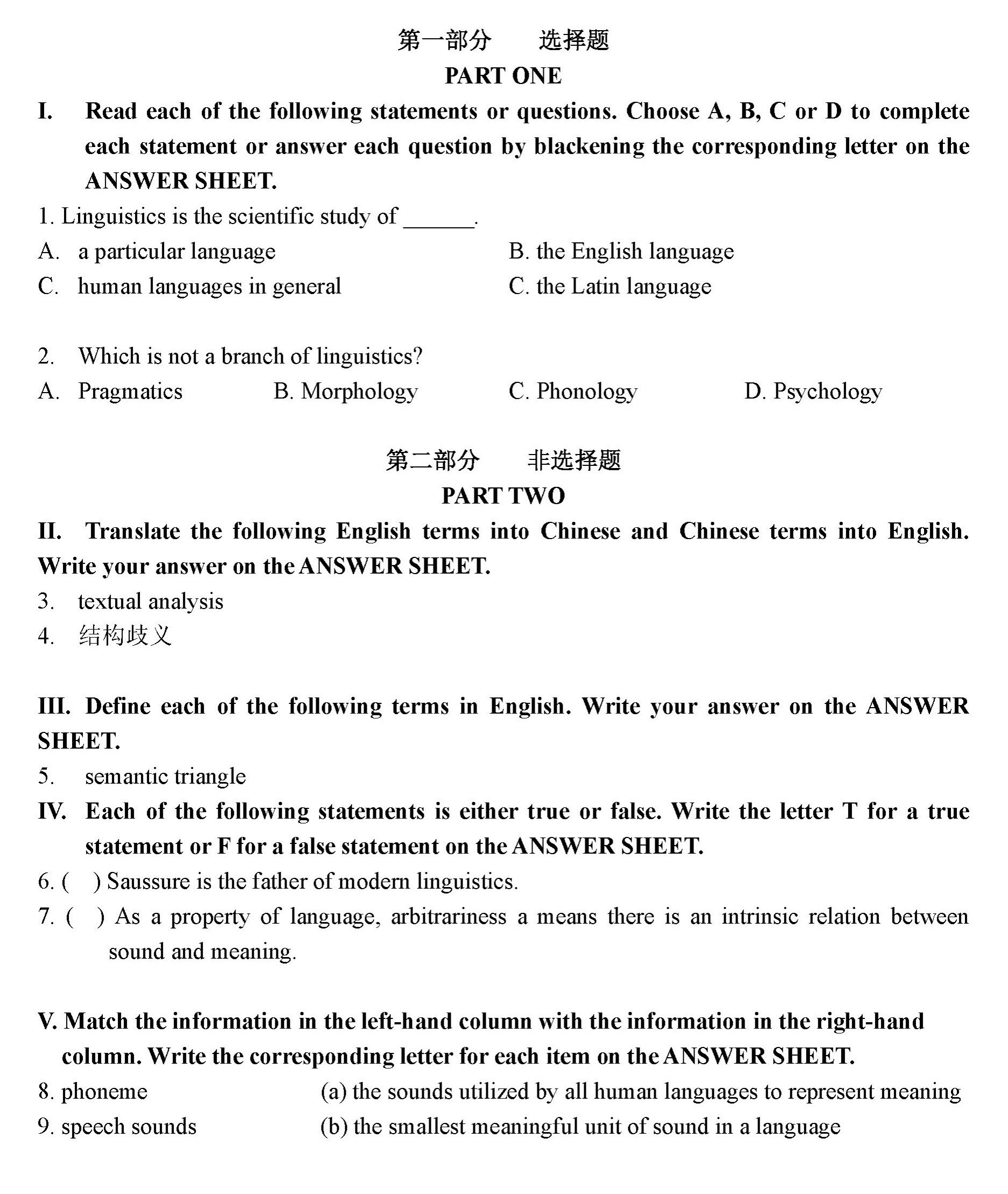 课程名称:英语语言学概论 课程代码:14894