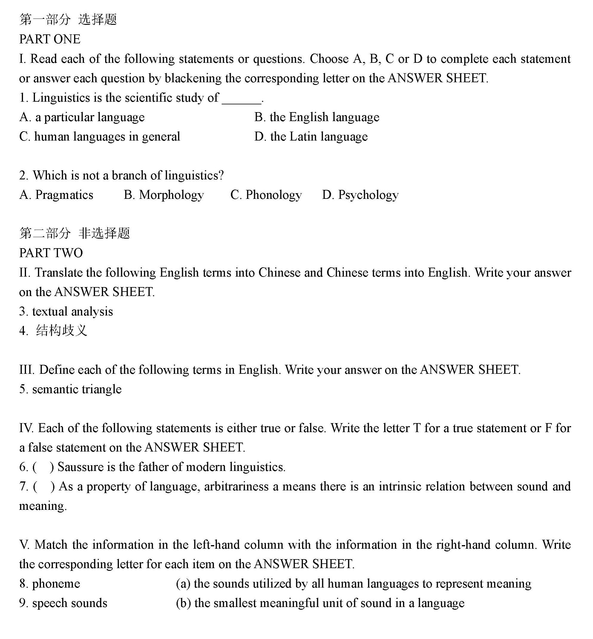 语言学概论考试形式:闭卷笔试,时长90分钟,采用百分制记分。